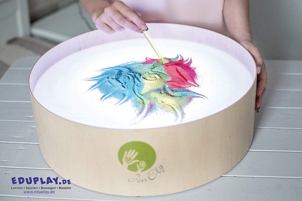 Bunte Sandkunst für kleine Künstler! Mit diesem farbenfrohen Set aus 12 leuchtenden Sandtönen entstehen im Handumdrehen fantastische Kreationen. Ob mit Fingern gemalt, mit Sandkämmen strukturiert oder mit Leim auf Papier geklebt – der feine Sand eröffnet endlose Möglichkeiten. Perfekt zum Verzieren von Vasen, Bilderrahmen und anderen Objekten. Das Set fördert spielerisch die Kreativität und Sinneserfahrung.