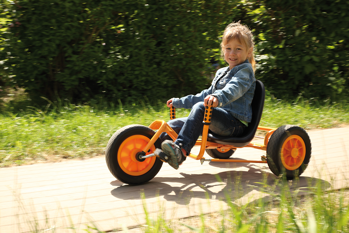 Abenteuer auf drei Rädern wartet! Das Trike "Rider" besticht durch seinen niedrigen Sitz und der beidseitigen Lenkvorrichtung in Höhe des Sitzes – perfekt für kleine Entdecker, die überall fahren möchten. Ob Asphalt, Kies oder Gras: Dieses wendige Gefährt meistert jedes Gelände mit Leichtigkeit und sorgt für maximalen Fahrspaß.